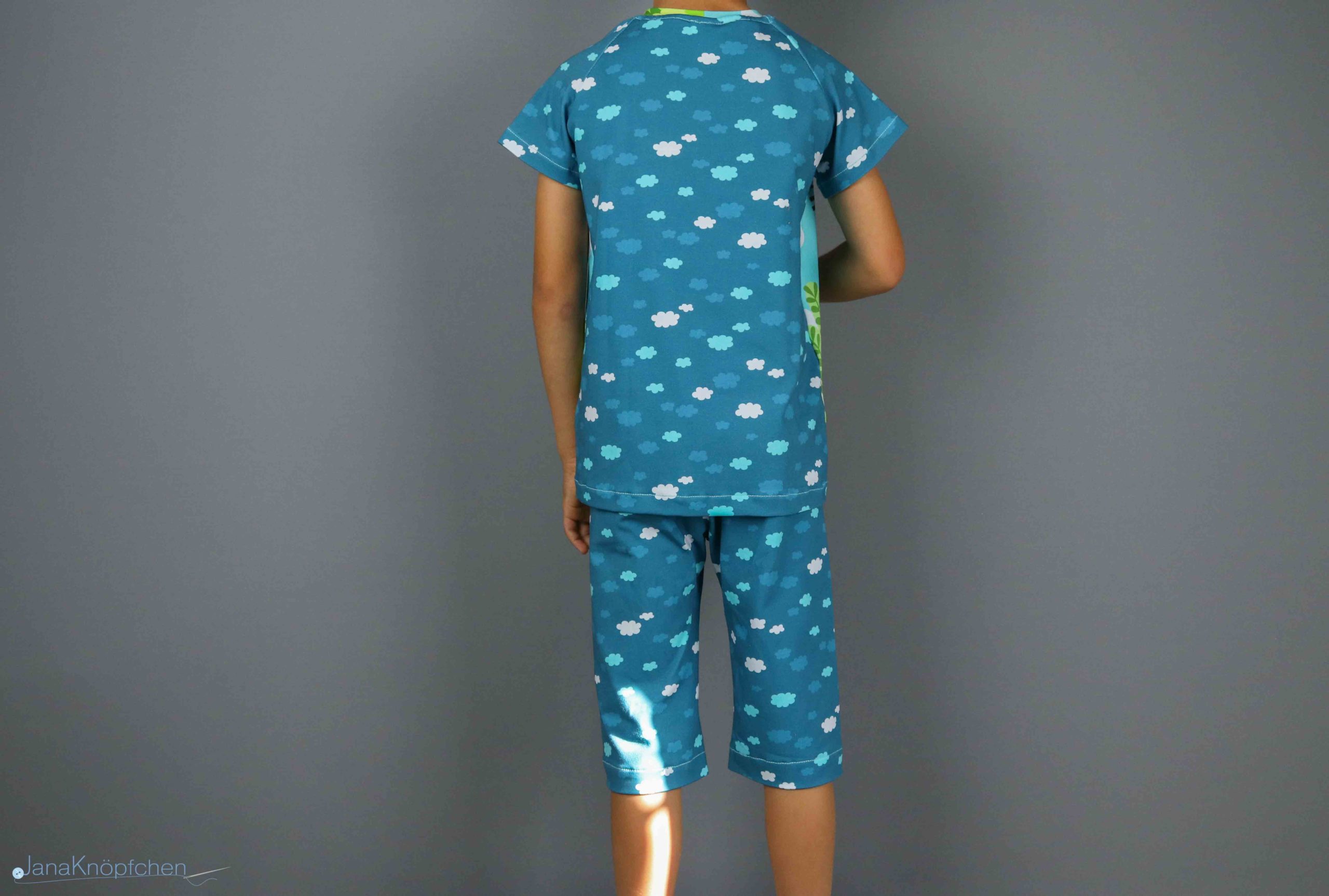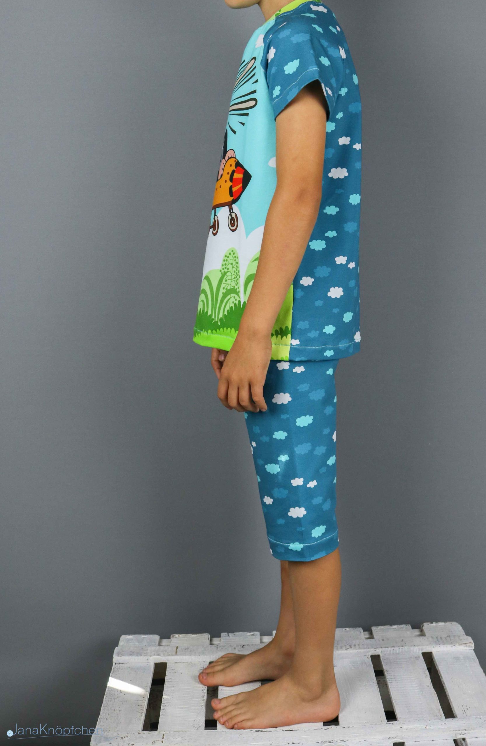 Ich nähte erst die Hose und dann das Shirt und zwischendurch auch schon eine Boxershorts, die ich euch dann nächste Woche zeige inkl. Tutorial. Denn aus den übriggeblieben Stoffen des Zuschnitts habe ich noch Boxershorts für den Lütten zugeschnitten, da er sich noch welche gewünscht hatte. Aber dazu nächste Woche mehr.
