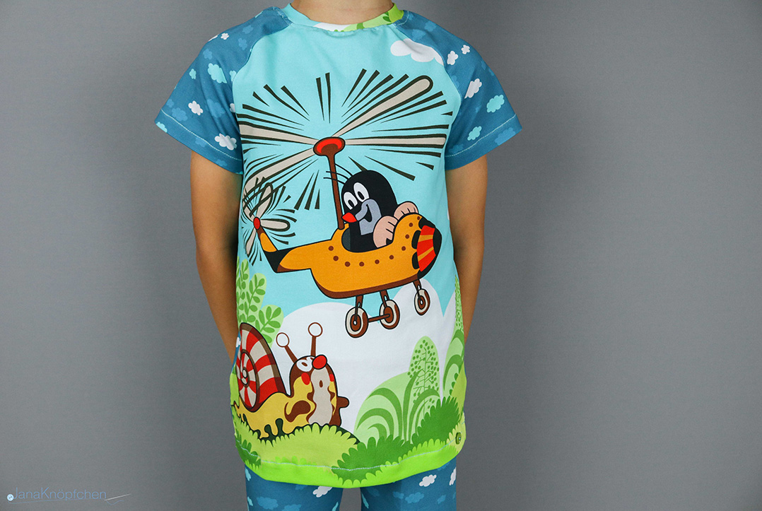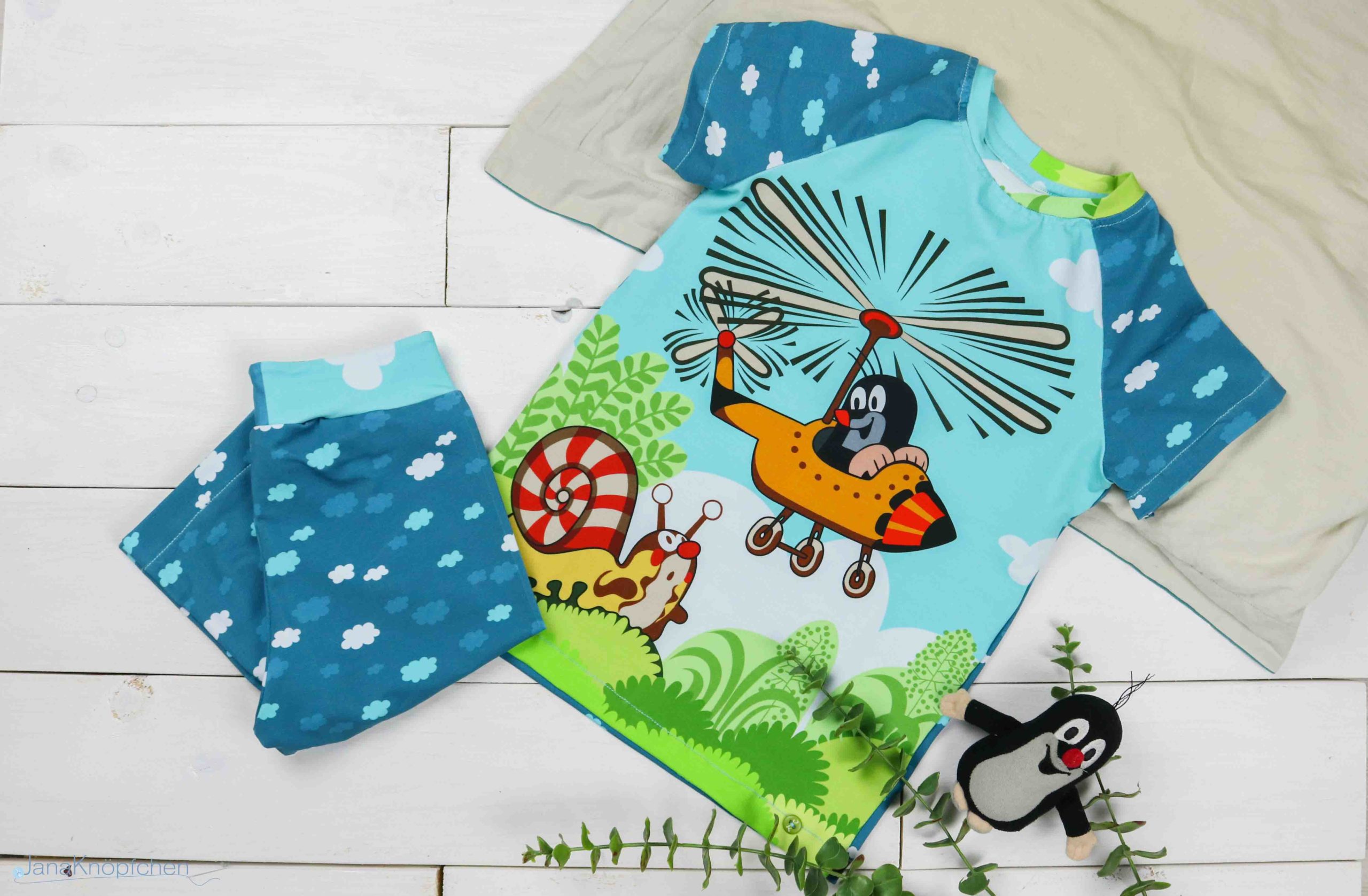 Ach der Krtek (so heißt der Maulwurf im Original) geht auch noch für ganz Große. Mein Sohn hatte diesen Sommer öfter sein Tshirt an und mehrere Erwachsene haben gesagt, wenn ich den Stoff nochmal finde, würden sie auch gerne ein Tshirt haben 😁. Wir finden Euren Schlafanzug ganz toll.