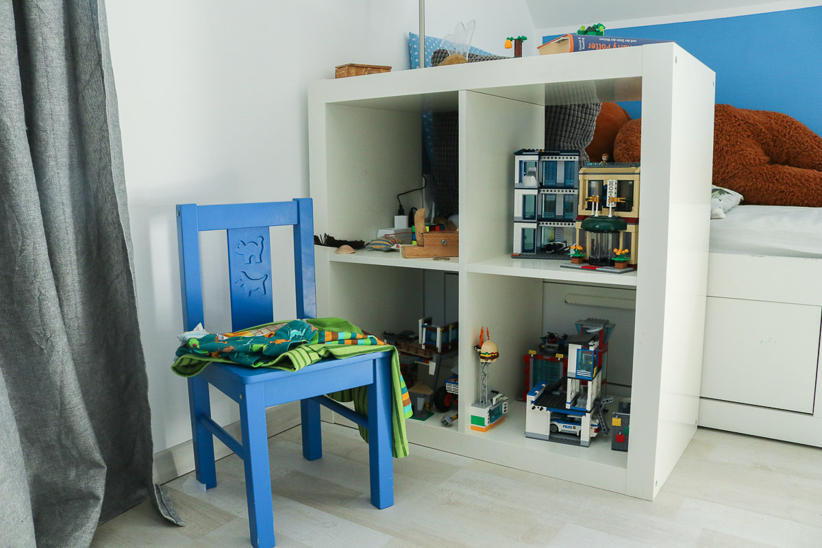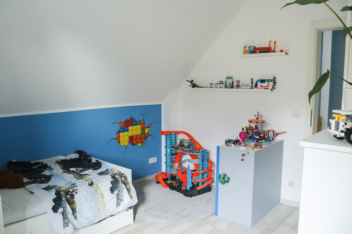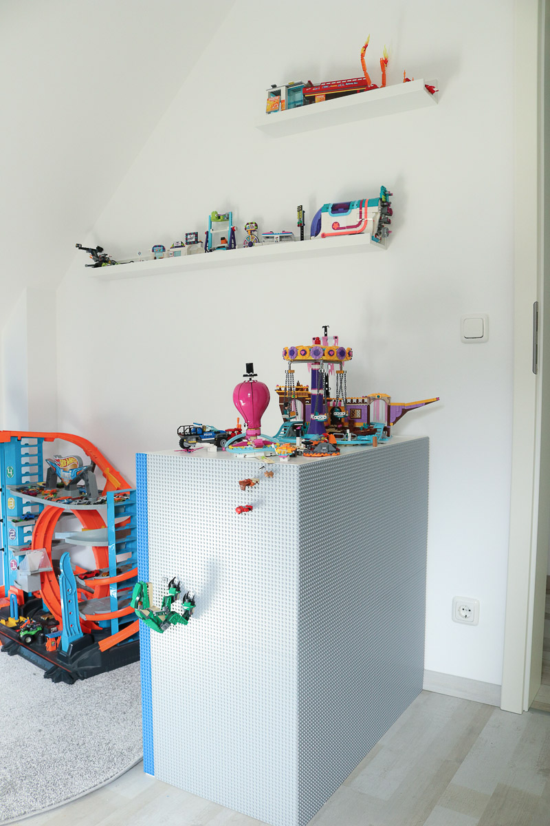 Das war eine der zentralen Fragen bei der Kinderzimmerrenovierung. Denn der Lütte ist ein absoluter Lego-Fan und so wollte ich die Sachen mehr Szene setzen. Also überlegte ich mir drei Sachen, die für das Zimmer passen: