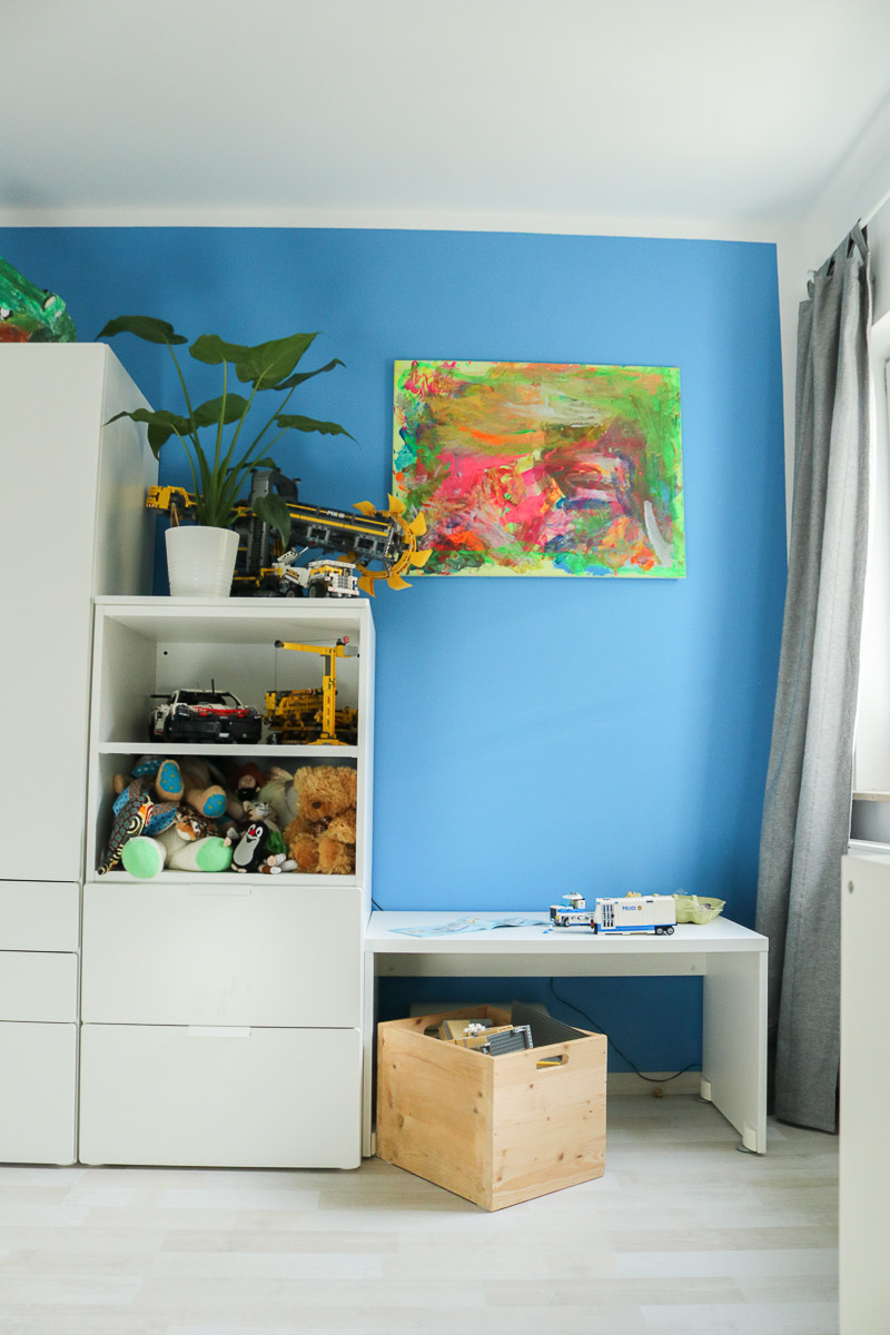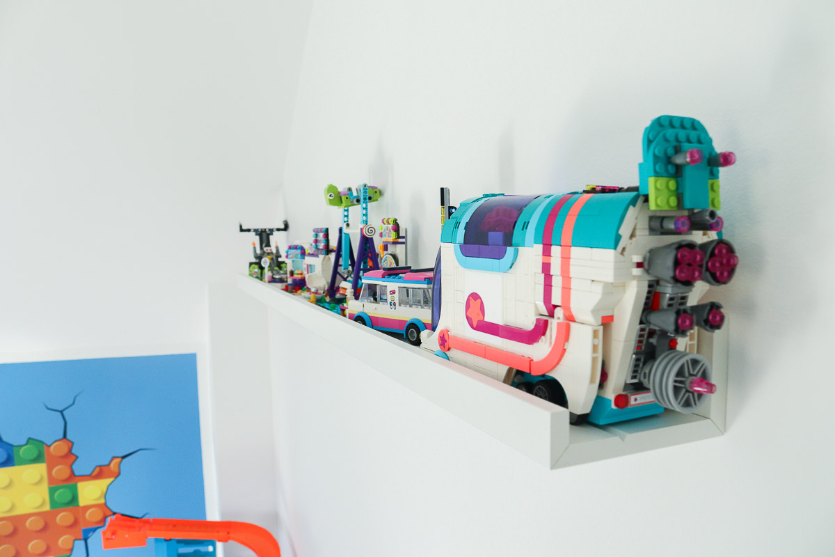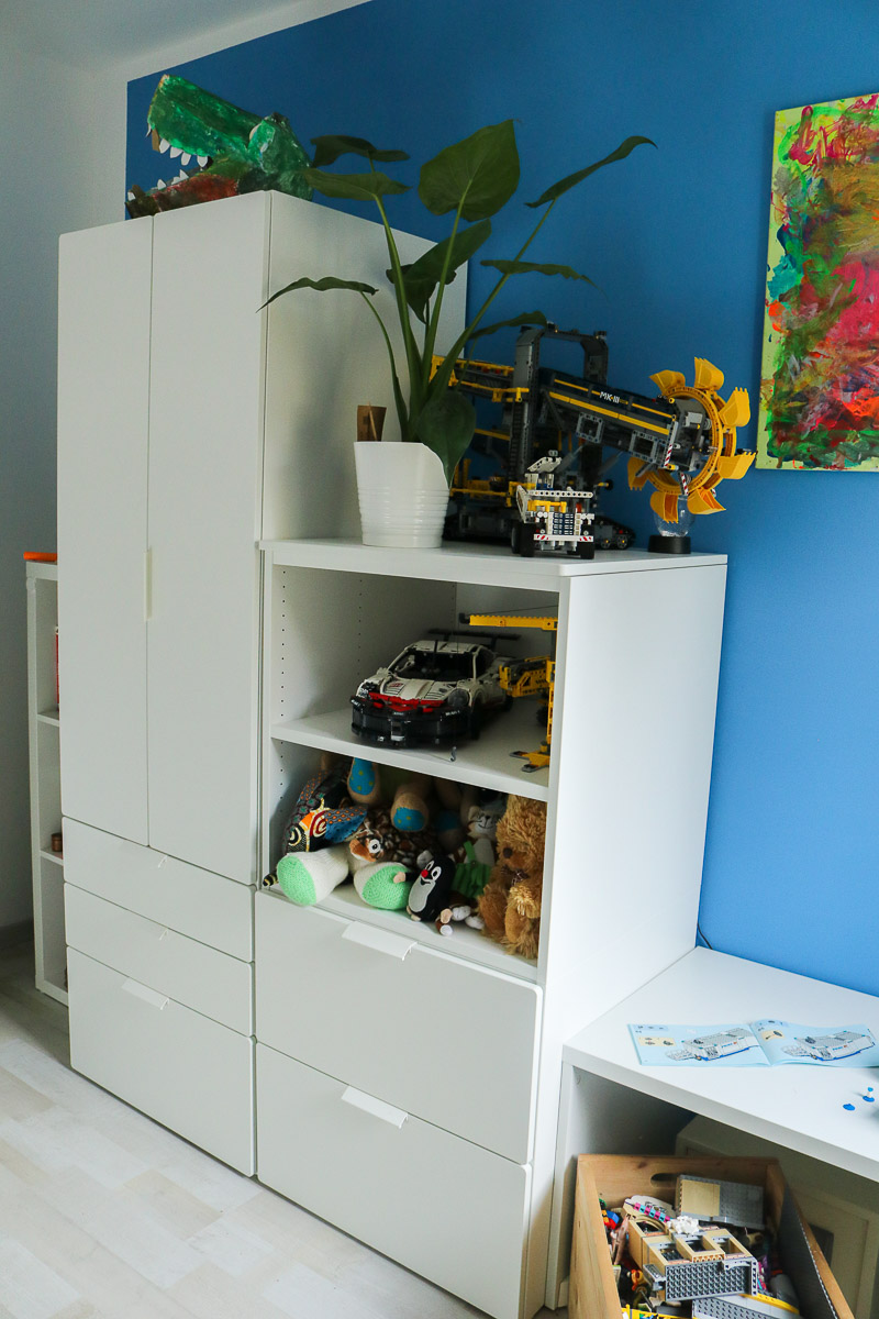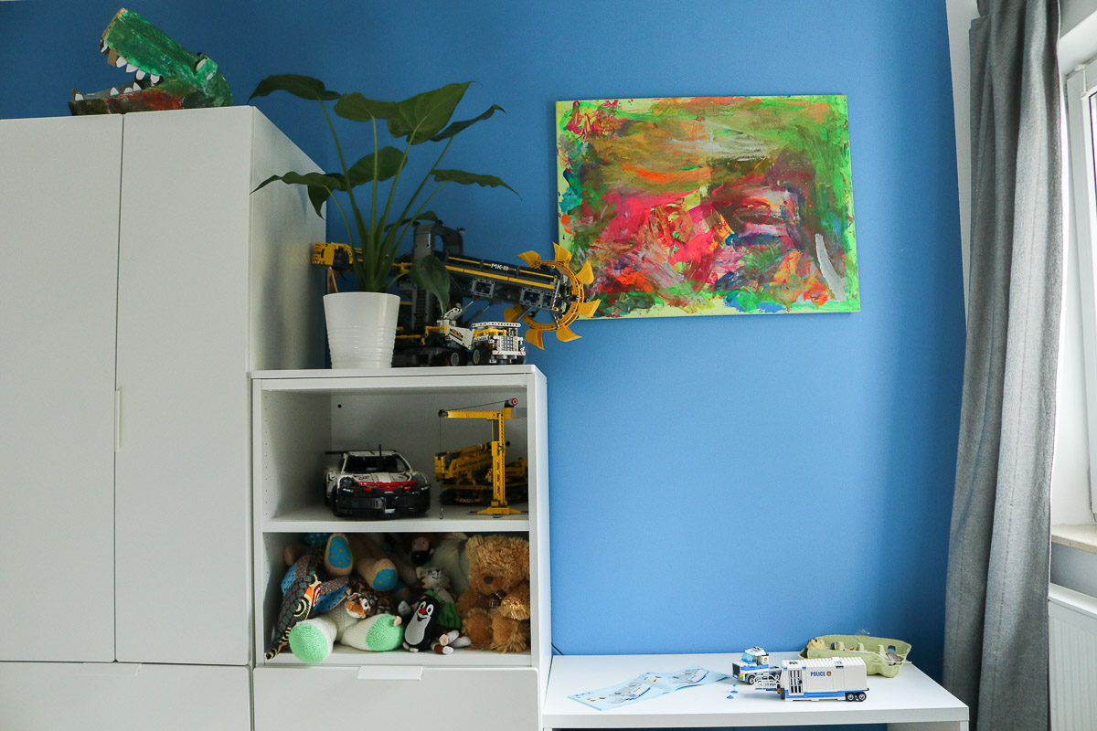 Das war eine der zentralen Fragen bei der Kinderzimmerrenovierung. Denn der Lütte ist ein absoluter Lego-Fan und so wollte ich die Sachen mehr Szene setzen. Also überlegte ich mir drei Sachen, die für das Zimmer passen: