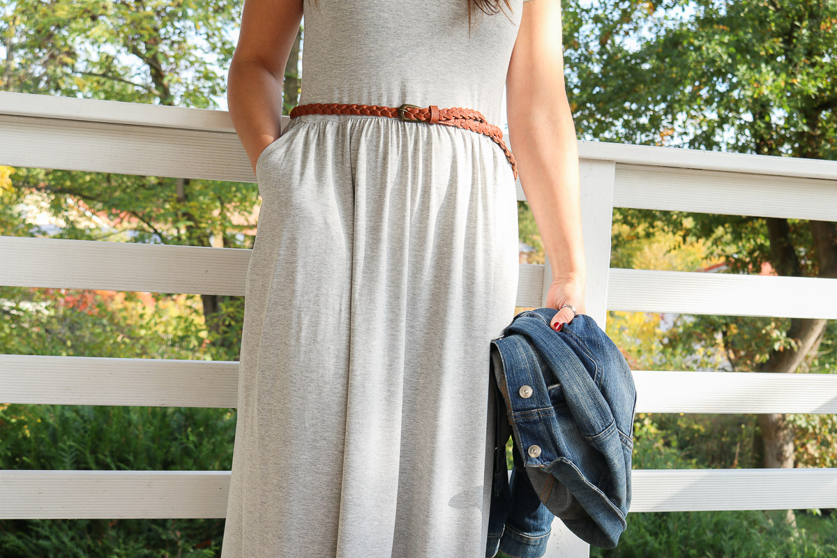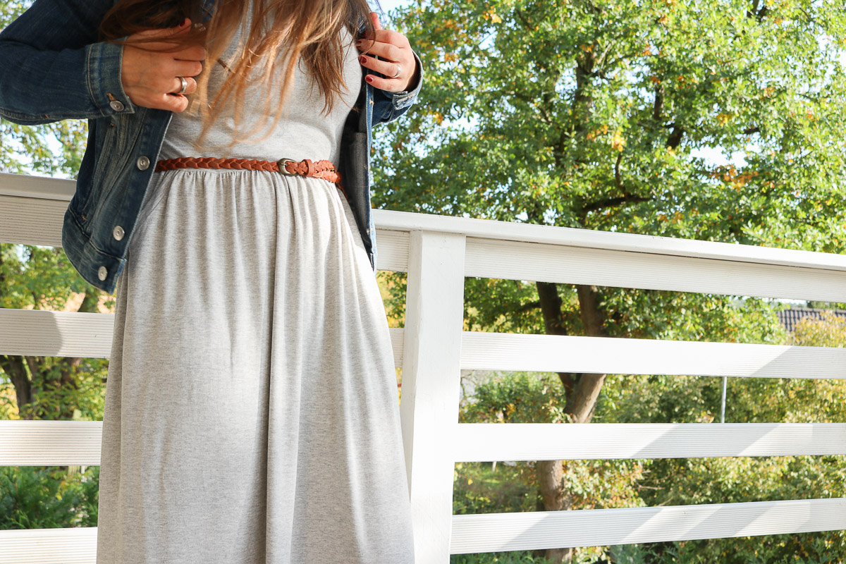 Seit ein paar Jahren sammel ich Nähinspirationen auf Pinterest und manchmal komm ich dazu diese auch wirklich umzusetzen. So wie dieses Nähprojekt. Ich wollte mir ein graues langes Kleid nähen. Das ich lange Röcke mag, wisst ihr ja schon – drei habe ich mir schon genäht: einen rosafarbenden, einen schwarzen, einen bunten und einen aus Glencheck. Und ich muss sagen, ich liebe sie. Vor allem kann man die Sommerröcke auch gut im Herbst tragen, denn niemand sieht die Leggings oder Strumpfhose darunter.