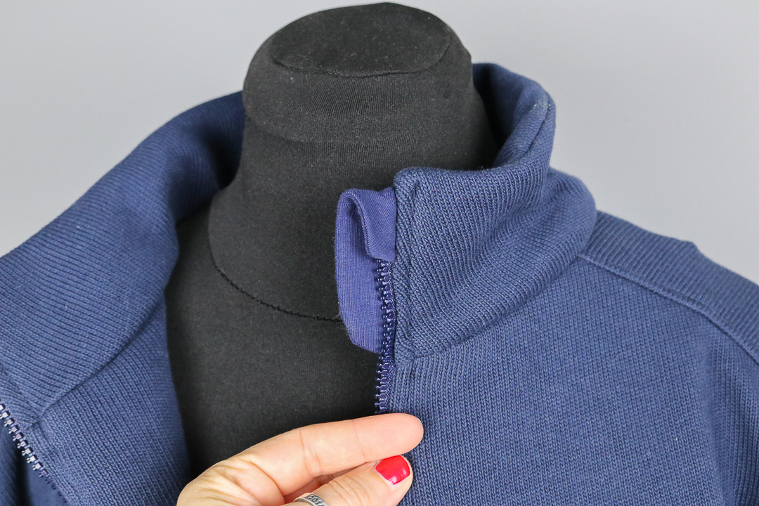 Bevor ich den Reißverschluss mit dem Beleg einfassen konnte, musste ich noch den Kragen und den Beleg zusammen nähen. Das probierte ich erst an einer Seite und als das klappte, dann an der nächsten. Auf der einen Seite des Reißverschlusses nähte ich noch einen Kinnschutz nach dem Tutorial von Farbenmix an. Dann ging es weiter mit dem Reißverschluss und dem Tutorial von Pattydoo.
