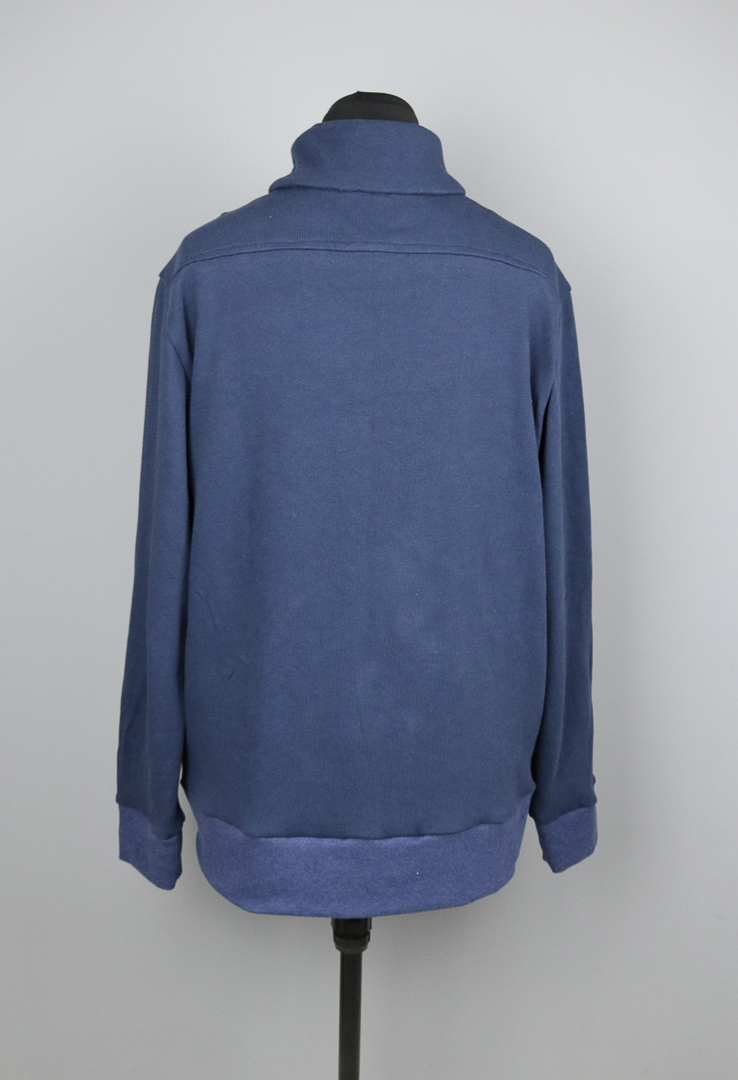 Ich kann gar nicht mehr sagen, wie ich auf die Idee gekommen bin eine Strickjacke für den Papa nähen zu wollen. Ich weiß noch, dass mein Mann und ich uns über Geschenkmöglichkeiten unterhalten haben und die Strickjacke das Ergebnis war. Mein Papa hat eigentlich immer eine Strickjacke an und ich glaube von ihm habe ich auch diese Angewohnheit – ich habe auch ziemlich viele Strickjacken und Cardigans im Schrank. Eines meiner ersten Nähstücke für mich war ein Cardigan. Und auch wie er mag ich blau…