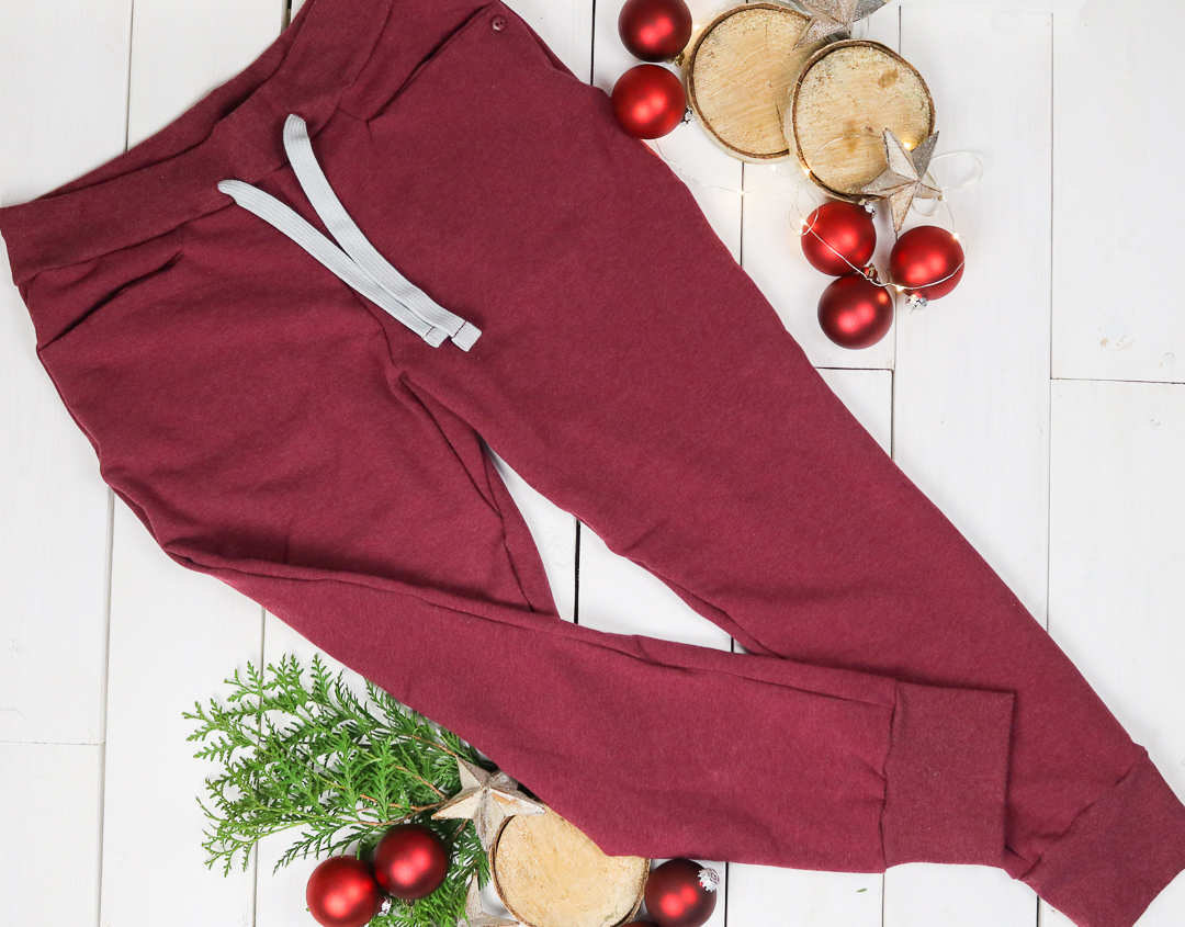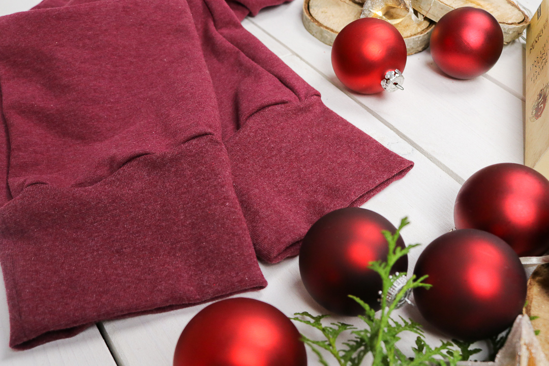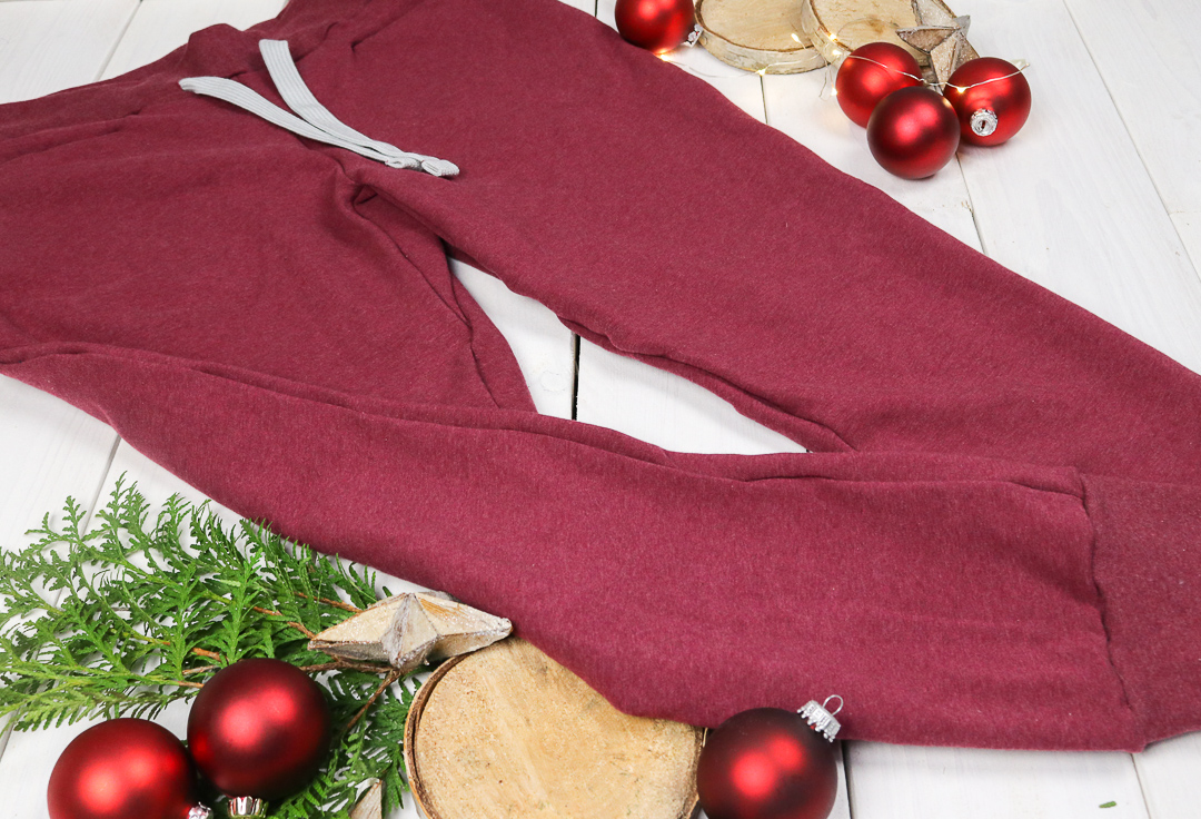 Also geritzt, die gemütliche Joggginghose sollte genäht werden. Ich schaute gleich bei Clarasstoffe vorbei, denn ich wusste, dass sie Sweat mit passenden Bündchen im Shop hat und ich wollte es gern einheitlich haben. Ich entschied mich dann für einen weinroten melierten Sweat, da sie diese Farbe sehr mag und zusammen mit dem Scandi Star Strick, aus dem ich meinen Weihnachtsstrickpulli genäht habe, landete alles in Einkaufswagen.