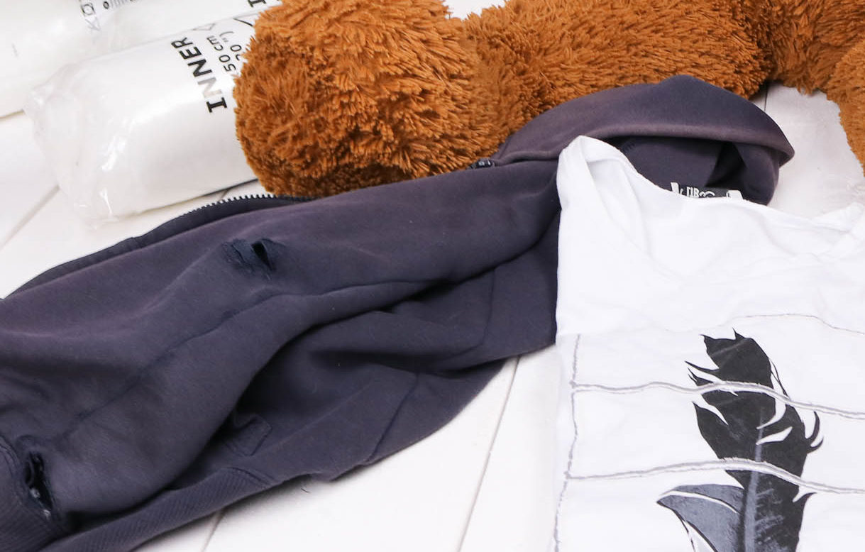 Heute gibt es mal kein neues Nähprojekt, sondern ich zeig euch drei kleinere Reparatur bzw. Rettungsnähprojekte, da das ja auch zum Nähen gehört und bei uns gerade aktuell ist. Es geht um das Lieblingskuscheltier des Lütten – unverkennbar der Teddy – eine Sweatjacke von mir und ein ausrangiertes T-Shirt des Mannes, das der Große aber tragen möchte.