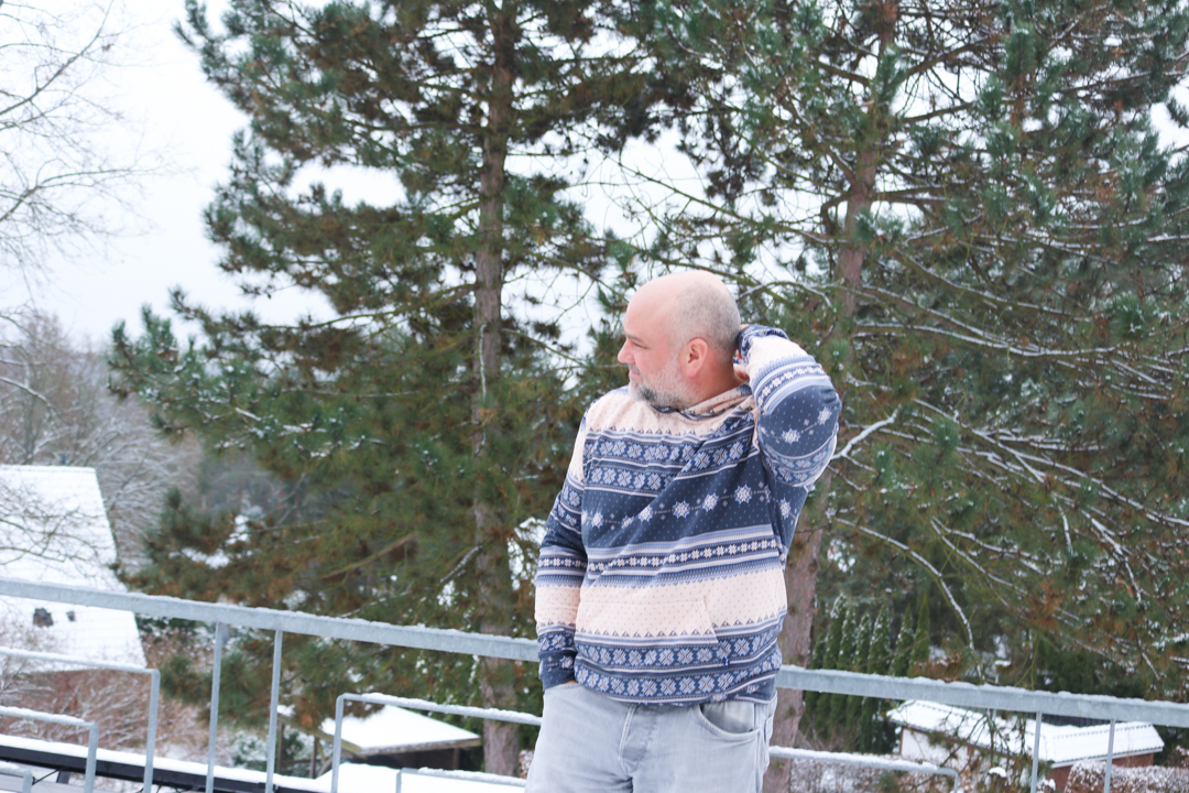 Selbstgenähter Weihnachtshoodie für den Mann mit Norwegermuster. JanaKnöpfchen - Nähen für Jungs